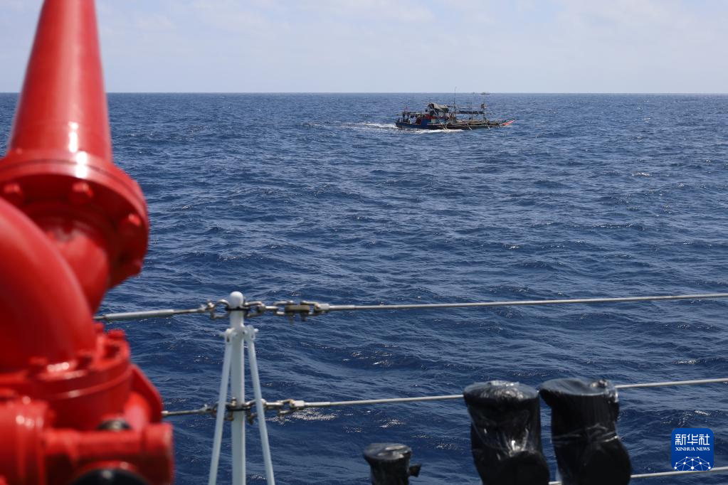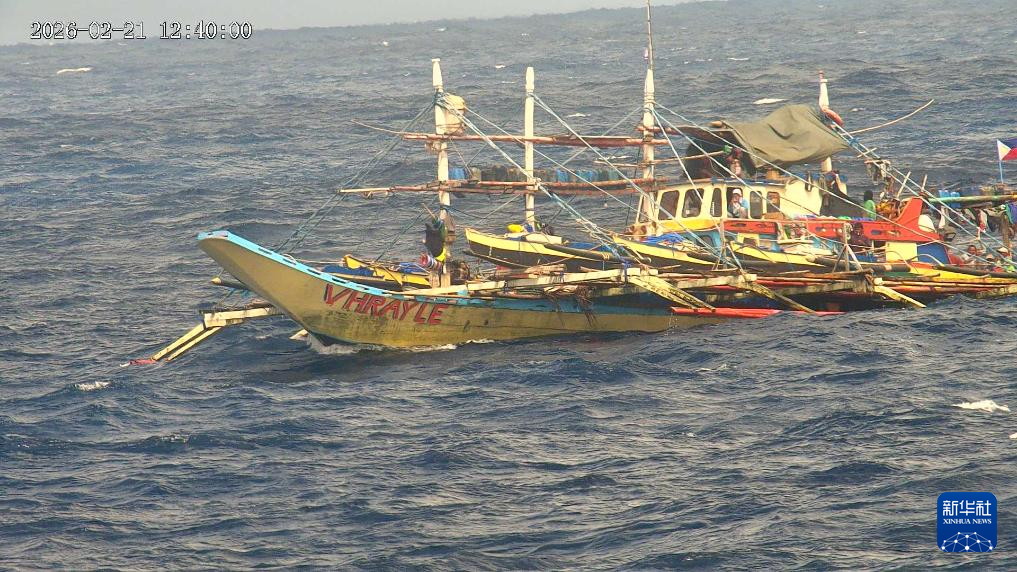 2月21日,菲律宾多艘船只集结侵闯我黄岩岛领海,被我海警万山舰编队依法驱离。这是中国海警鹤宝舰在对冲闯我黄岩岛领海的菲船只进行警示性水炮喷射(视频截图)。