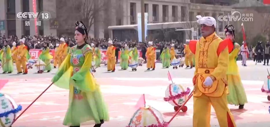 在陕西安康市中心城区,千余名表演者身着彩服,手持彩扇,踩着鼓点一路巡游。舞龙舞狮、花鼓子等传统节目与大道锣鼓、打连钱等地方特色民俗表演轮番亮相,吸引了众多游客和市民驻足观赏。