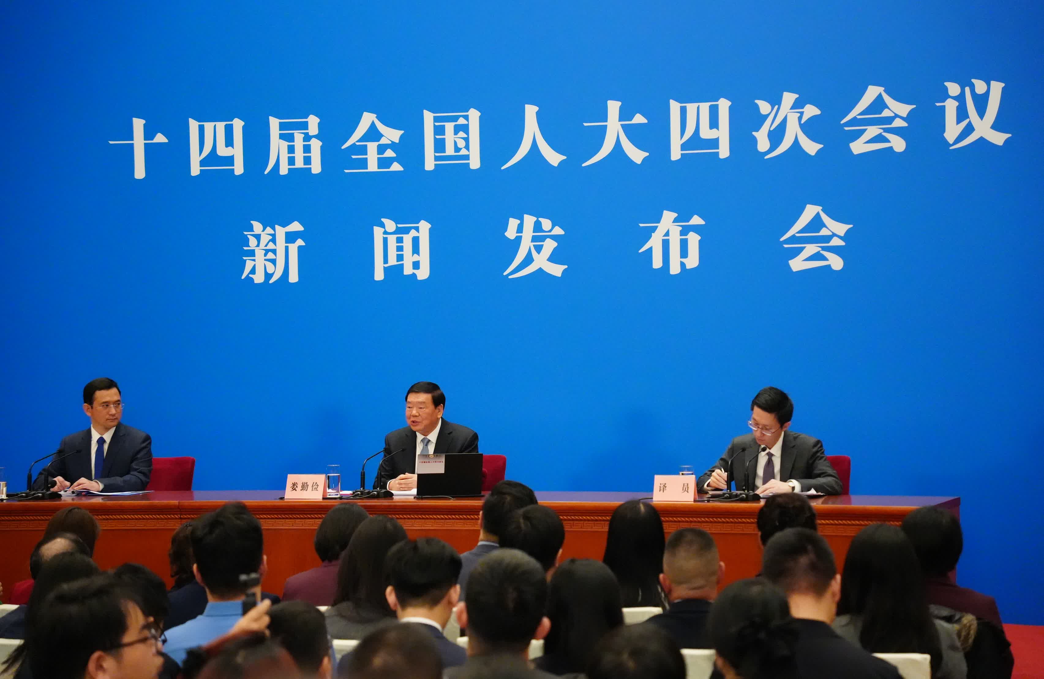 十四屆全國人大四次會議今天(3月4日)在人民大會堂舉行新聞發布會,大會發言人婁勤儉就大會議程和人大工作相關問題回答中外記者提問。