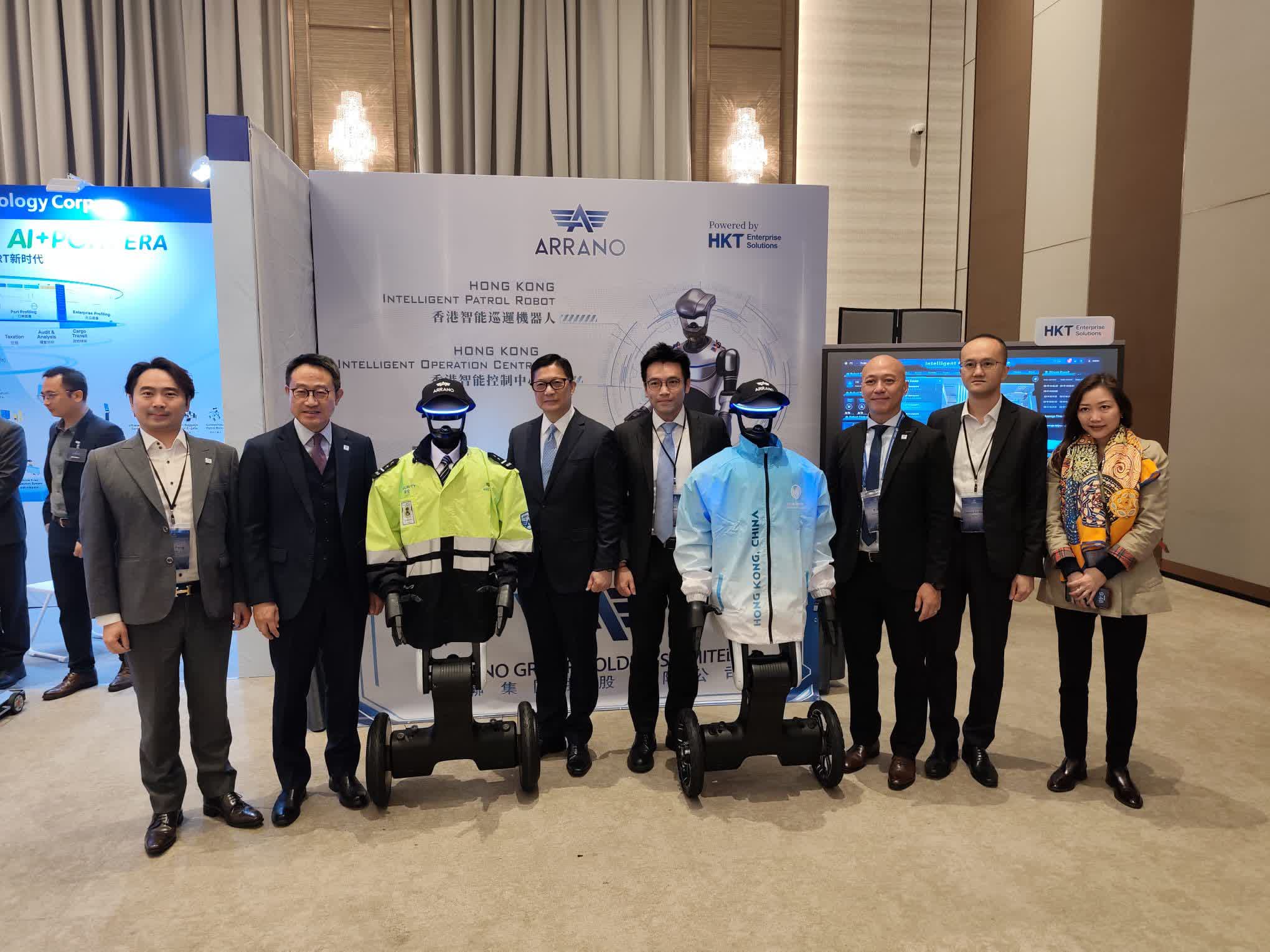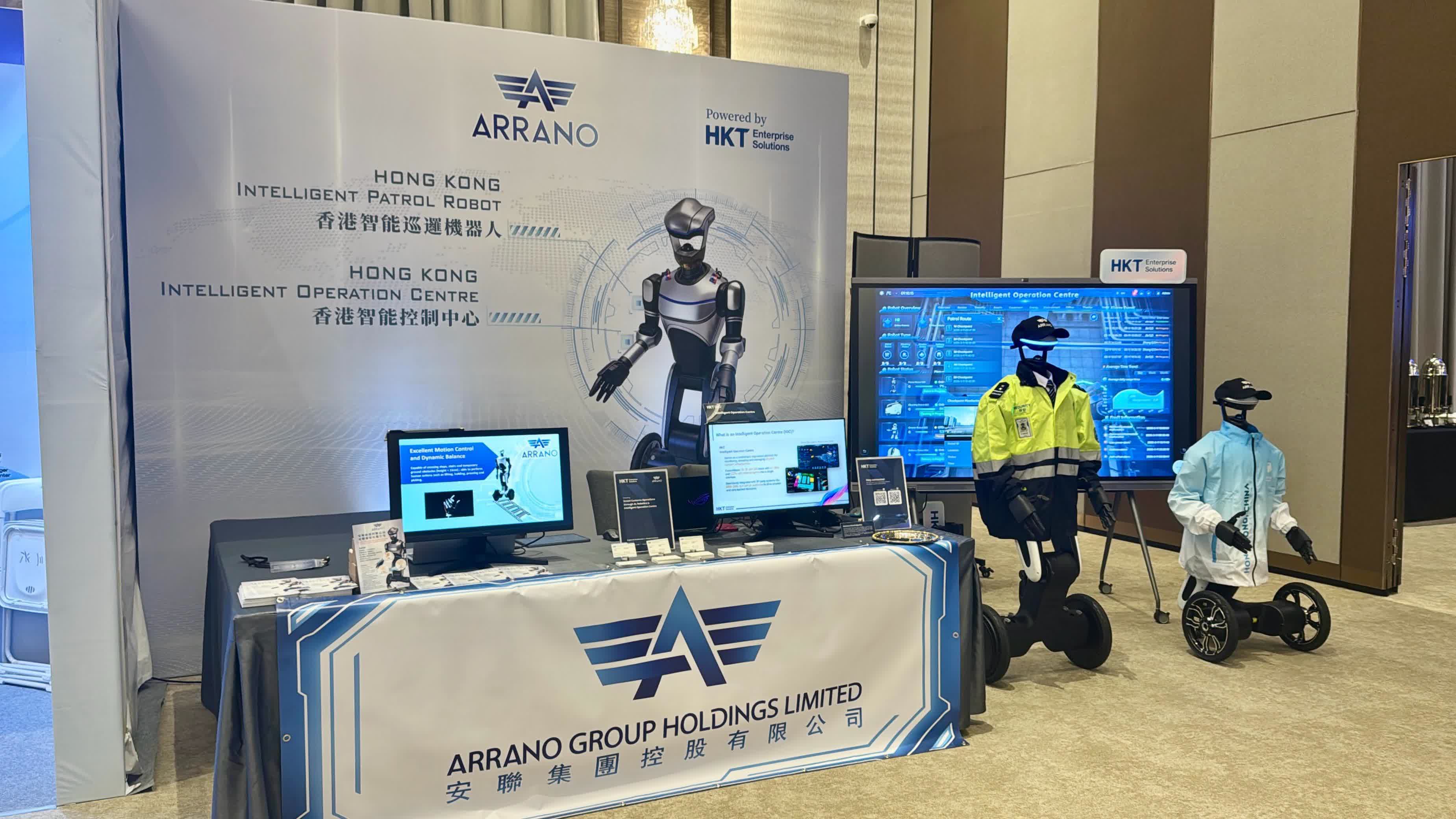 作為本地科技企業先驅,安聯集團控股有限公司旗下安聯科技有限公司受邀參展,展示由香港團隊研發的智能巡邏機器人及智慧營運管理方案。該機器人具備自動巡邏、異常偵測及實時影像傳輸功能,可全天候執行保安任務;配合正開發的「智能營運中心」系統,能整合數據並實現中央調度,全面提升監控效能。