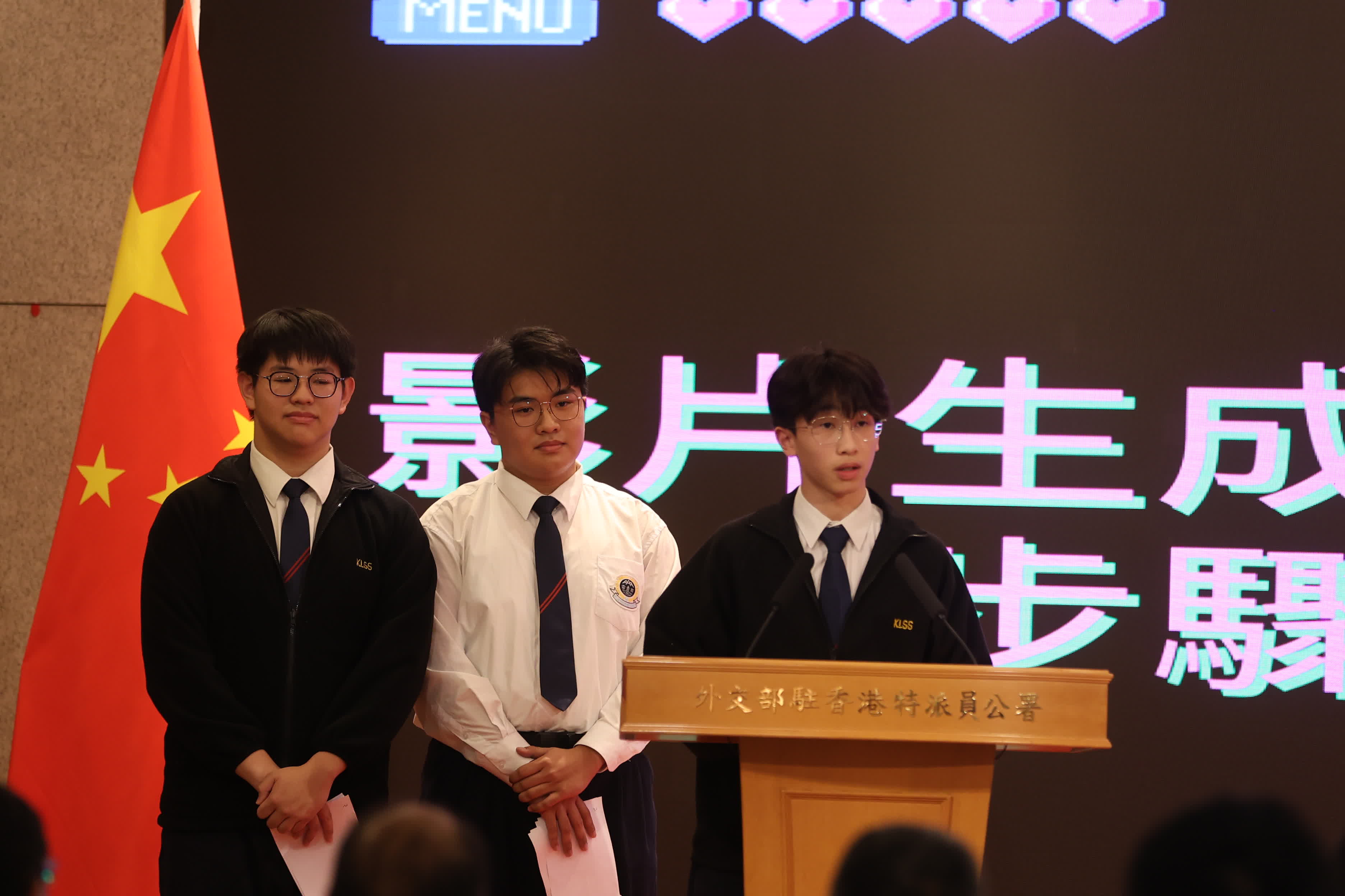 憑藉作品「大灣區脈搏」斬獲冠軍的高雷中學中五學生王浩堯,現場分享了此次參賽的創作心得與體會。談及參賽契機,他說道:「我的學校一直開設影視製作課程,讓我們能充分發揮創意與潛能。最近課堂上引入了 AI 製作相關內容,看到僅憑文字描述,AI 就能生成生動的畫面,這啟發了我,何不把這項新本領運用到本次比賽中,用先進技術講述未來的香港故事?於是我便開啟了這部影片的創作。」