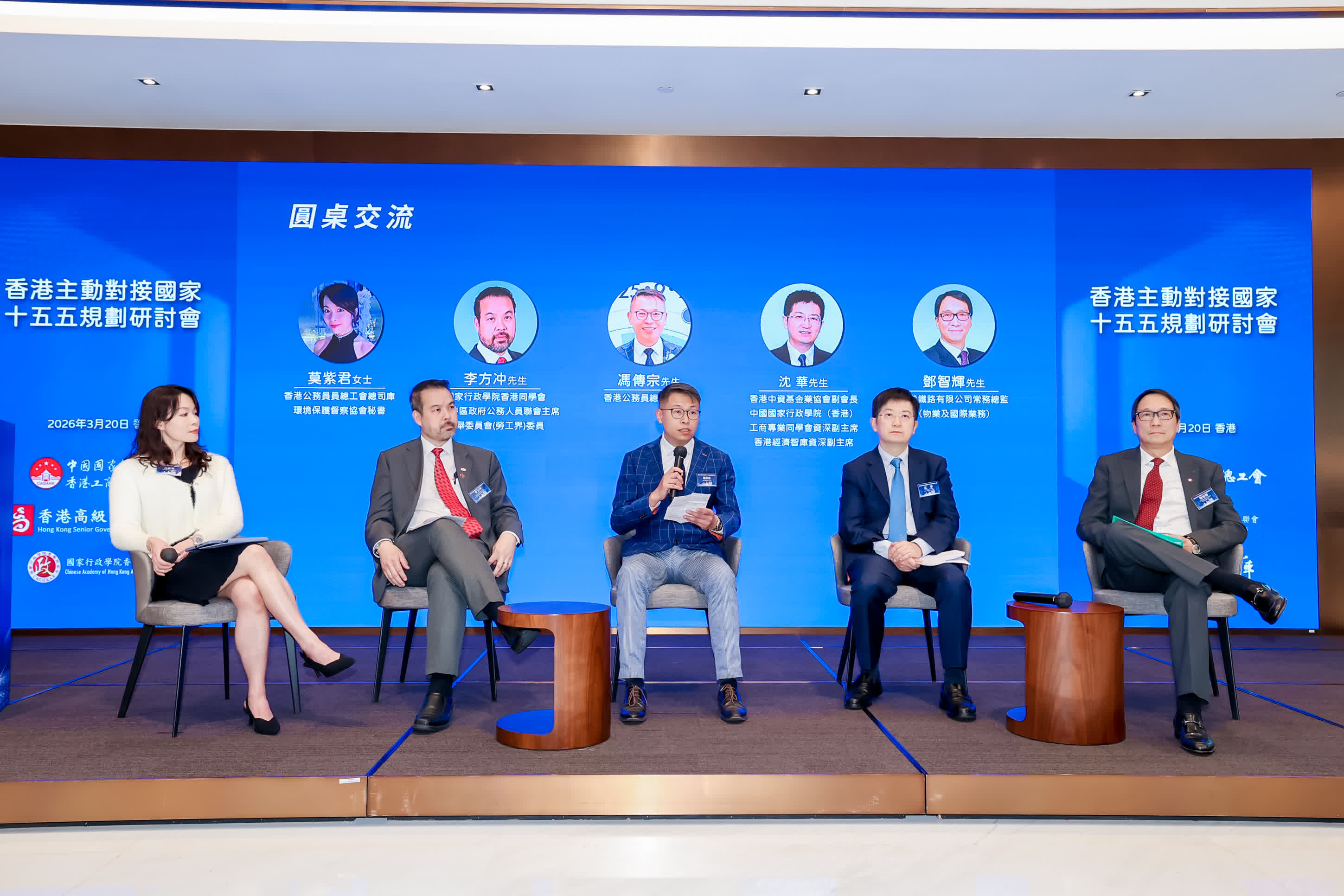 本次會議還安排了圍繞大會主題的圓桌討論。國家行政學院香港同學會主席、香港特區政府公務人員聯會主席、選舉委員會(勞工界)委員李方沖,公務員總工會主席馮傳宗,香港中資基金業協會副會長、中國國家行政學院(香港)工商專業同學會資深副主席、香港經濟智庫資深副主席沈華,香港鐵路有限公司常務總監(物業及國際業務)鄧智輝擔任討論嘉賓。