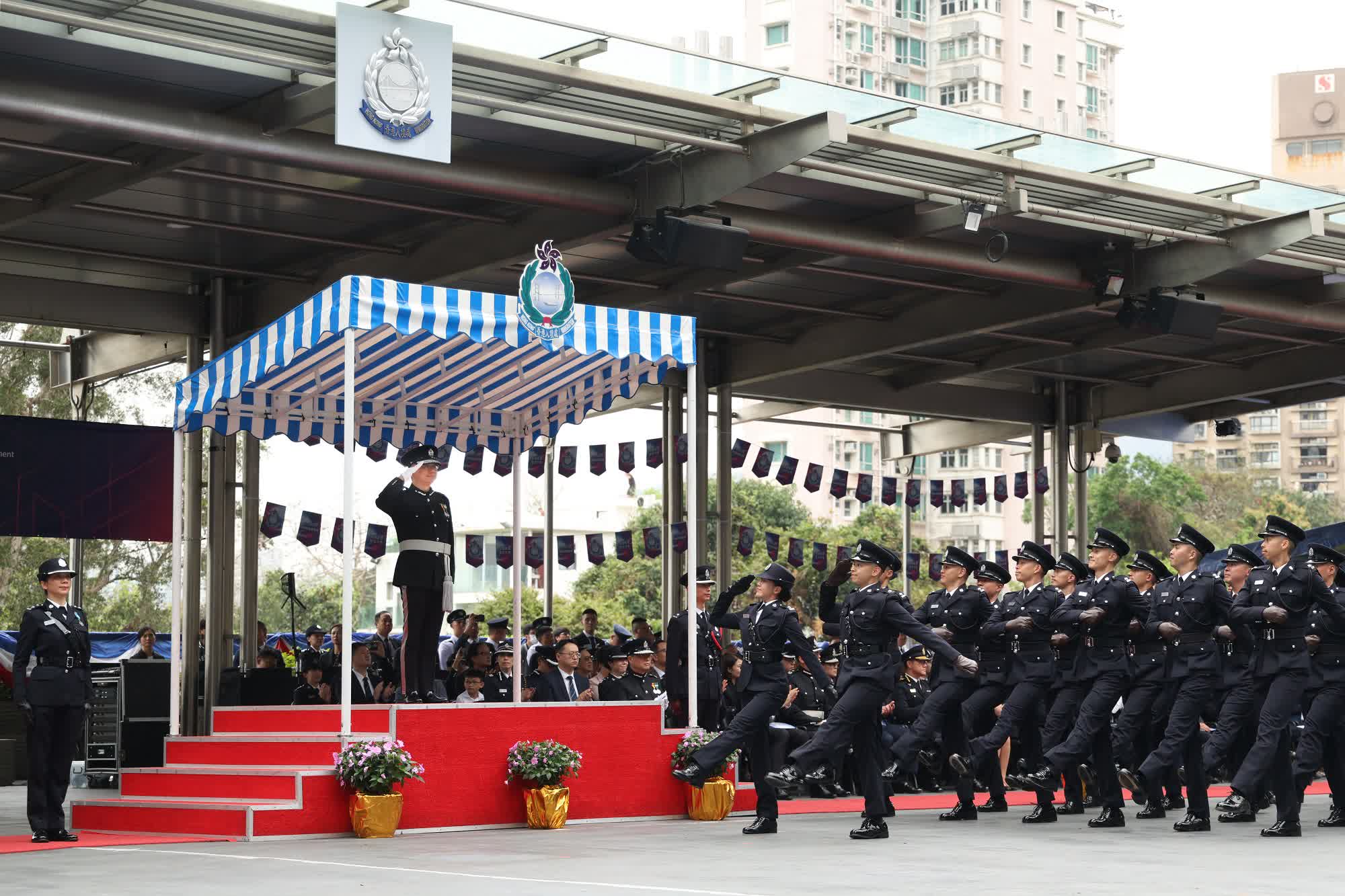 郭俊峯勉勵各結業學員,在新崗位要與同事團結一致。執法時剛正不阿,服務時溫暖親切,方能無愧於身上的制服。他希望學員在任何崗位都要「識變、應變、求變」,確保入境處這支紀律部隊始終走在時代的最前線。