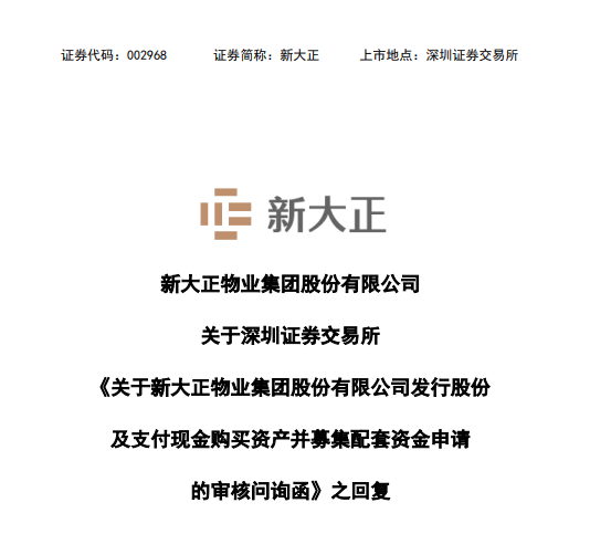 乐居财经 李兰 4月2日,新大正(002968.SZ)披露了对深交所《关于发行股份及支付现金购买资产并募集配套资金申请的审核问询函》的回复公告。