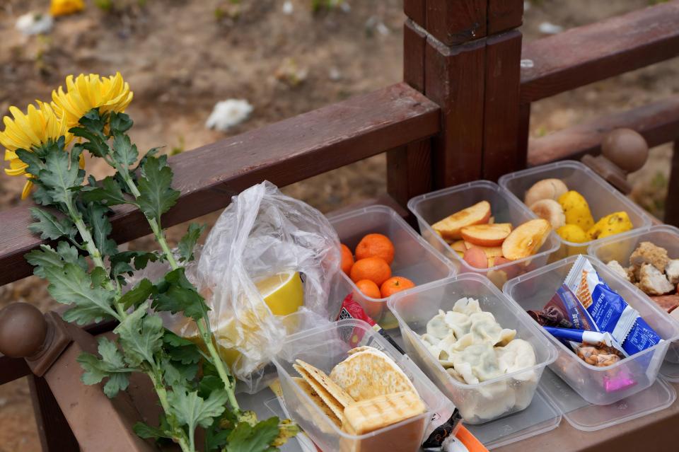 供桌上,一盒煮熟的水饺传递着绵绵思念。新华网 杨涵 摄