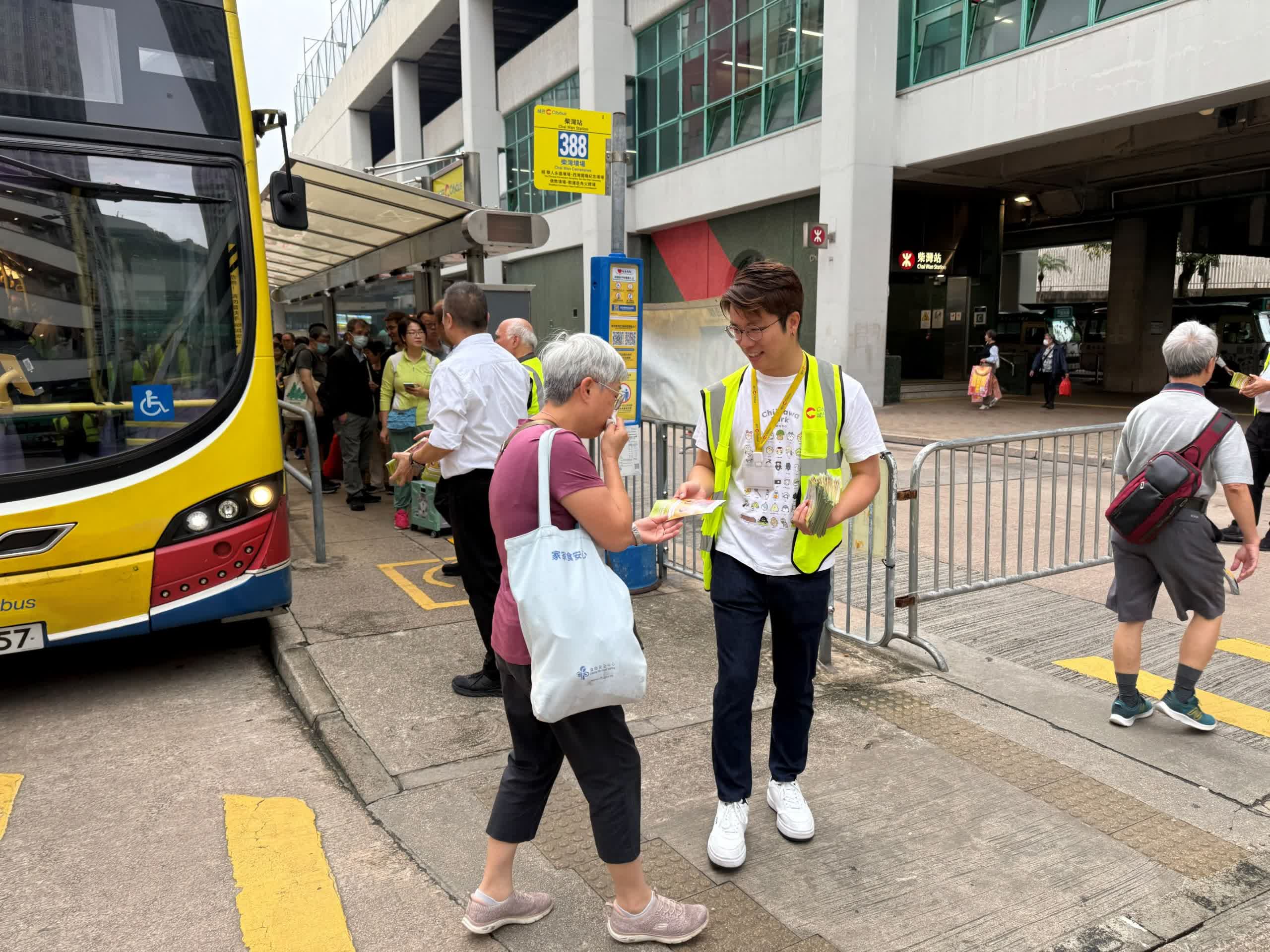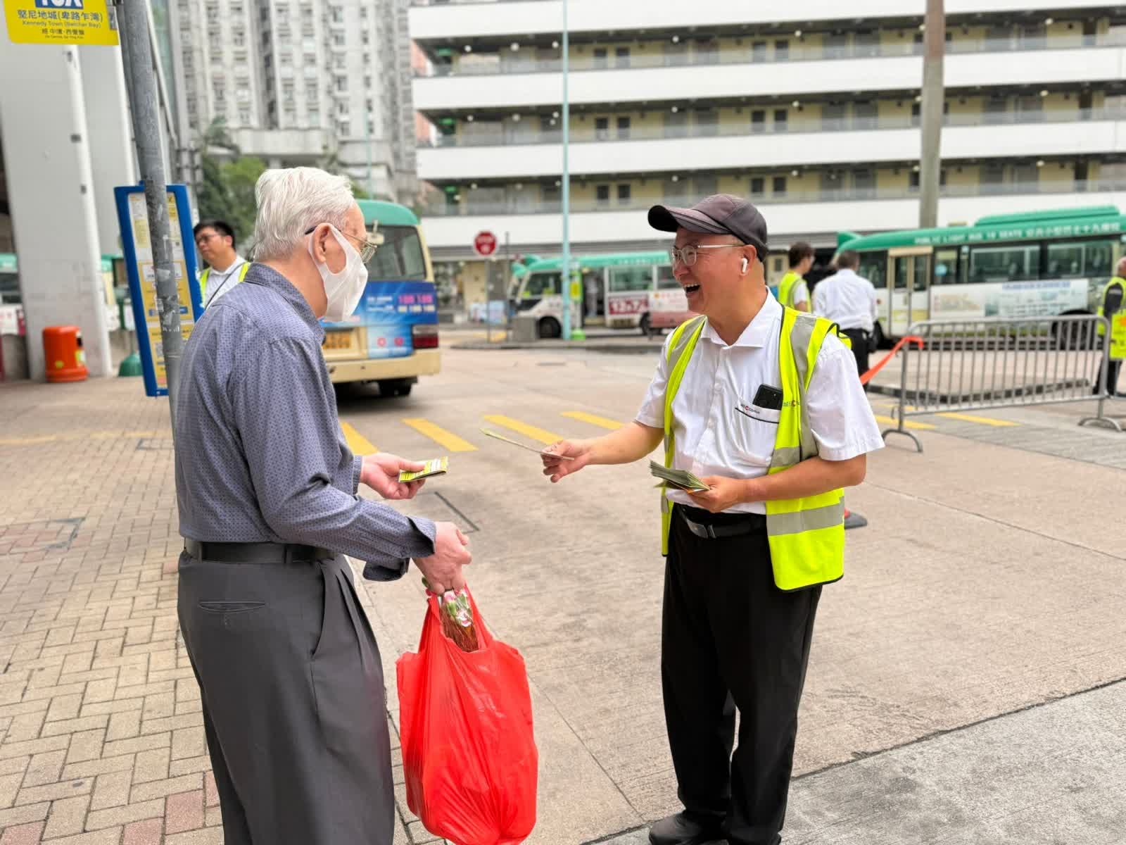 香港文匯報訊(記者 蕭景源)政府「兩蚊兩折」政策今日(3日)起實施,城巴逾300條專營巴士路線今早整體運作暢順,城巴已安排宣傳大使駐守主要巴士總站解答乘客查詢,以及安排後勤支援團隊隨時候命。因應清明節長假期今日開始,宣傳大使早上到柴灣及筲箕灣多條清明節特別路線的巴士站,向長者乘客派發宣傳小冊子及簡介新安排。