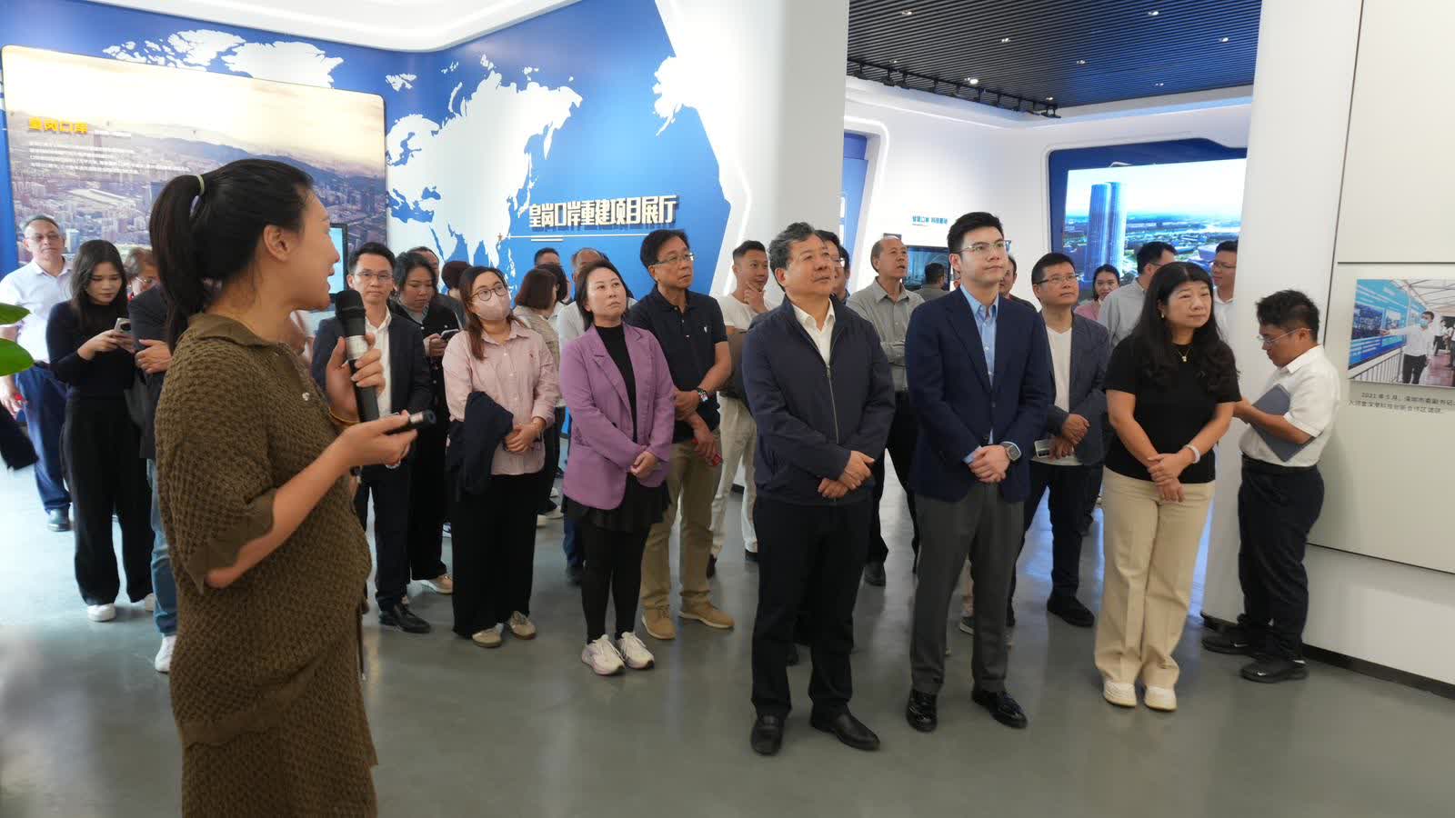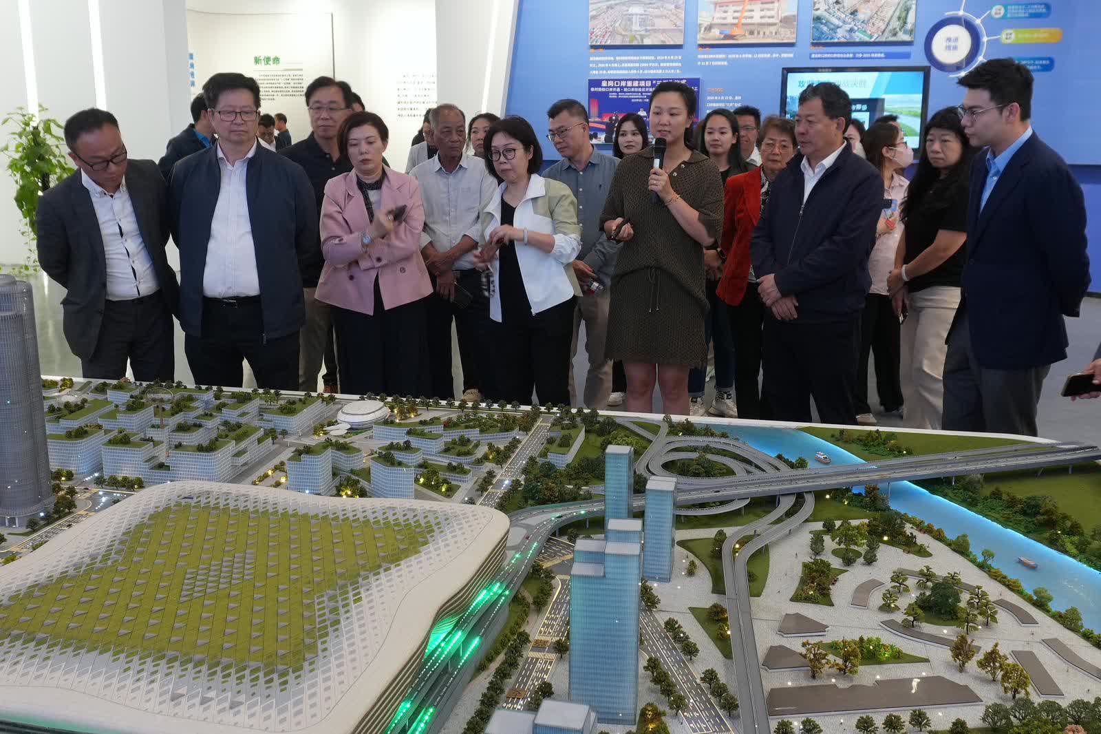 在市口岸辦帶領下,新社聯一行到建設中的聯檢大樓工地附近了解工程進展、參觀項目展廳,了解聯檢大樓的功能設計、周邊配套,隨後進行座談。王大平對新社聯一行表示歡迎,並感謝大家對口岸的關注,希望大家可為深化深港緊密務實合作多做貢獻。