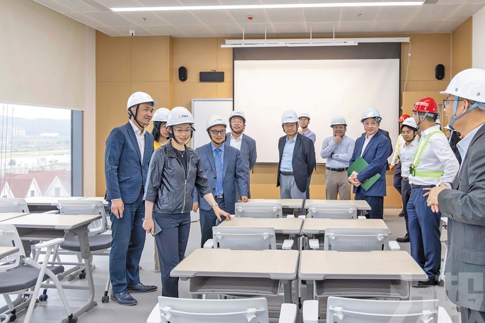 柯嵐司長一行先抵達位於合作區的大學城第一期項目設施進行考察。有關項目建築面積約6萬5千平方米,改造裝修工程現正進行,澳門大學、澳門理工大學、澳門旅遊大學預計於2026年8至9月期間入駐,開展研究生教學活動。