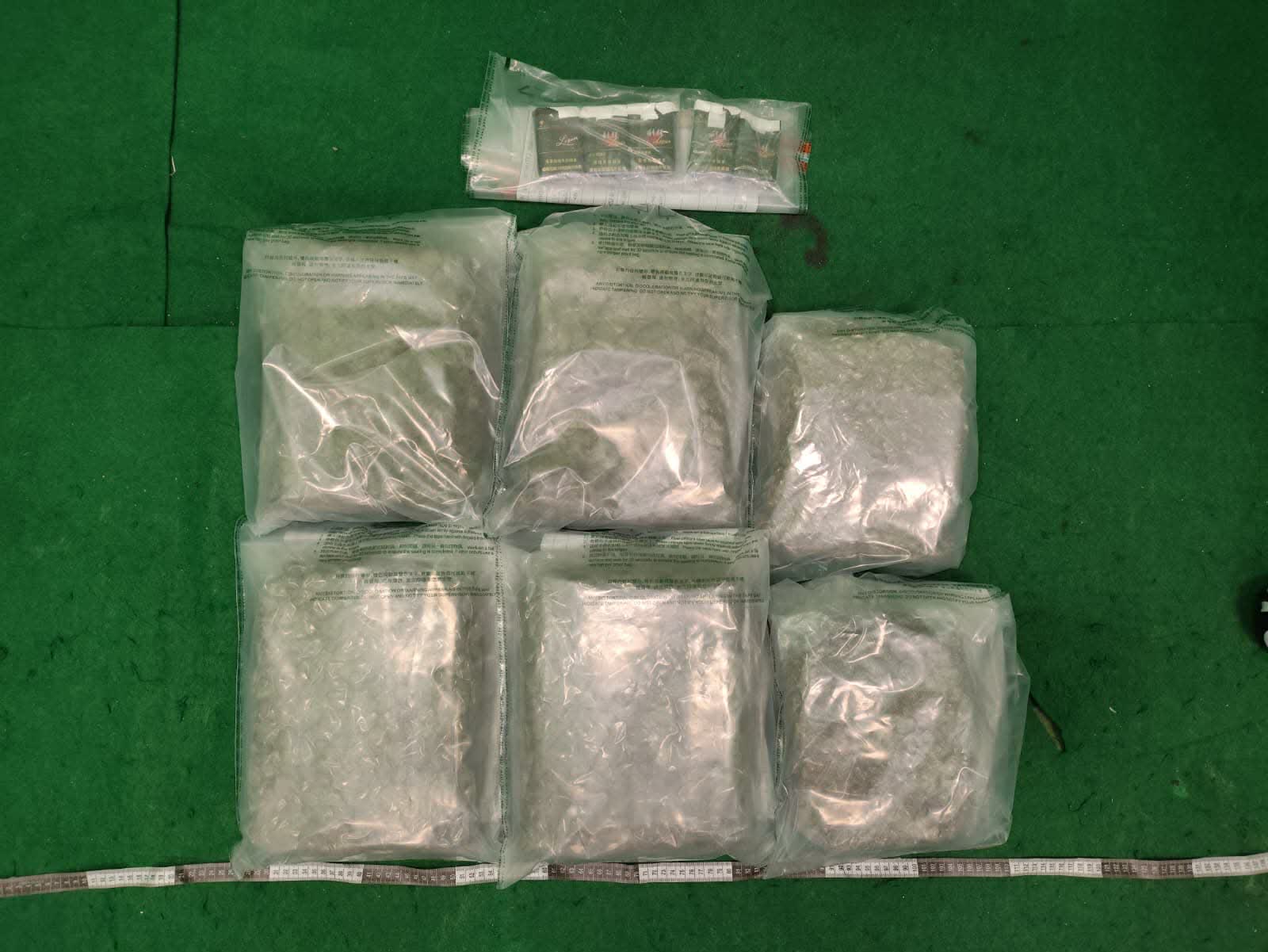 一名31歲的男旅客昨日從泰國曼谷飛抵本港。海關人員替他清關時,在其手提行李內發現該批藏於真空膠袋的懷疑大麻花,以及該些未完稅香煙,該名男子隨即被捕。