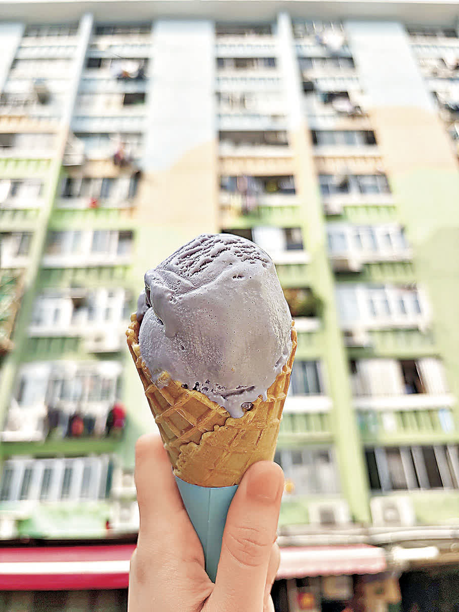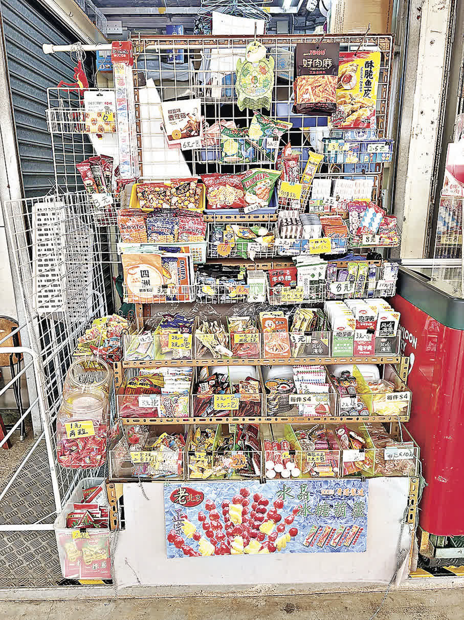 拍完照後,沿樓梯下來就到南山商場的平台,這裏只有零星幾間舖營業,白底紅字的手寫招牌,看起來頗有歷史。商場內沒有空調,只有幾台風扇,還未到夏天,已經能感受到悶熱。不過走到平台外圍,就有一家售賣雪糕的「C+屋」,慳妹迫不及待買一個雪糕消暑。菜單頗為震撼,一眼望過去竟然有32款不同口味的雪糕球可選,當中更有「南山豆腐」、「芝麻街」、「石板街」、「啤梨」這些聞所未聞的口味。一顆紫心香芋味單球8元,配上4元的特大珍寶甜筒,大件夾抵食。旁邊還放有一個懷舊零食架,低至1元就有得食,真是穿越回童年。