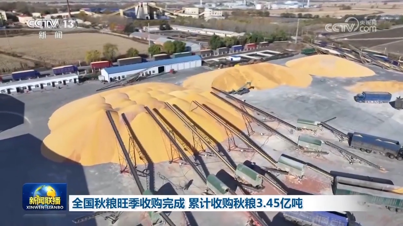全国秋粮旺季收购完成 累计收购秋粮3.45亿吨