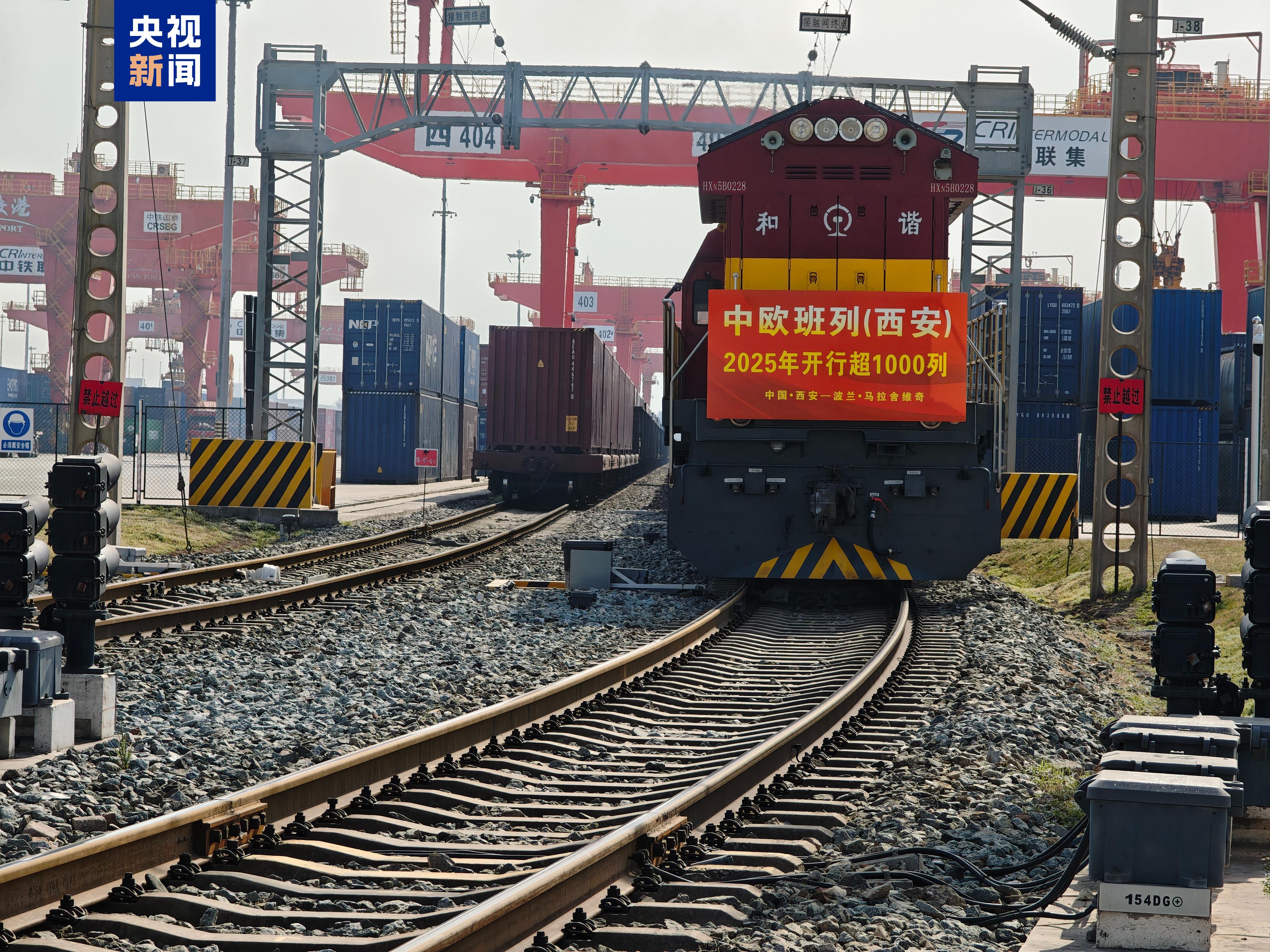 On the morning of March 21, the X8489 China-Europe Express, full of electronic products, mechanical accessories, chemical products and other goods, slowly drove out from Xi'an International Port Station and headed west to Malashevich, Poland, marking that the China-Europe Express (Xi'an) will run more than 1,000 trains in 2025, breaking the 1,000 train mark 8 days earlier than 2024.