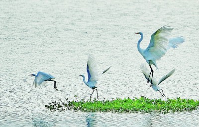 山东济南卧虎山水库,白鹭翩跹起舞。新华社发