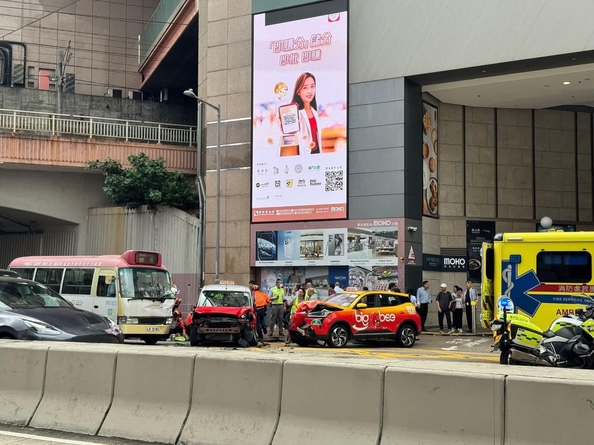 旺角新世紀廣場的士撞倒保安員 再撞另一的士及小巴共5人傷