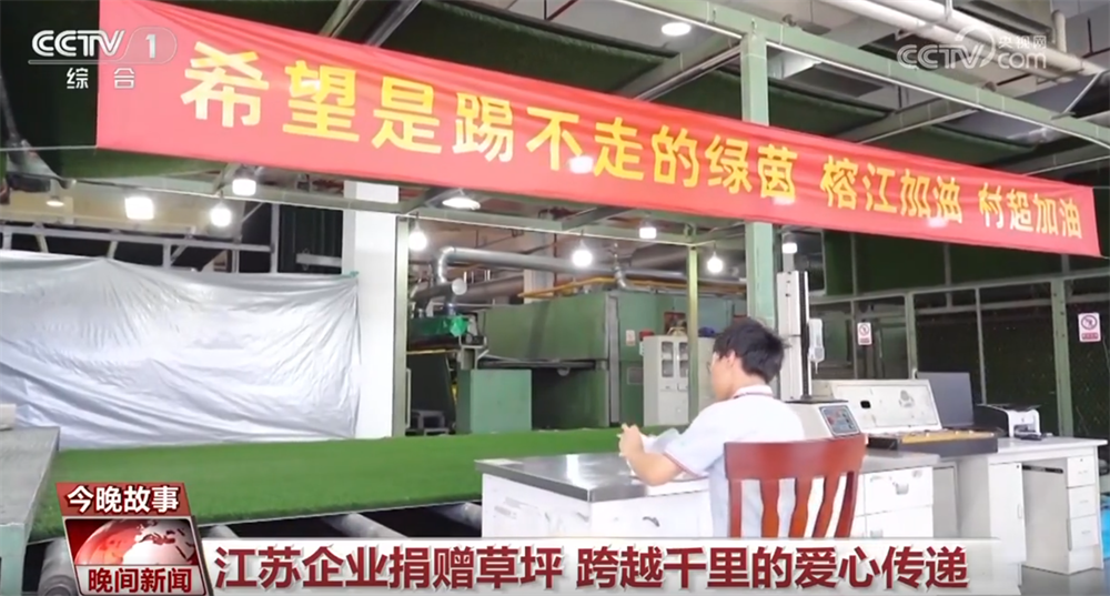 张妍是江苏一家生产足球场草坪的企业负责人。这次遭遇洪灾后,她第一时间联系了当地的相关部门,想为“村超”球场重建捐赠人工草坪。从研发到生产,张妍的团队日夜赶工连续奋战,不到三天时间就把捐赠给榕江的8000平方米人造草坪赶制出来,穿越一千六百多公里来到榕江。当货车进场的时候,榕江当地的群众已经在现场等待帮忙卸货,杨玉碧就是其中之一。抗洪救灾时,杨玉碧在忠诚村的食堂做过厨师,给救援人员做盒饭。如今,她又来到“村超”球场献出自己的一份力。