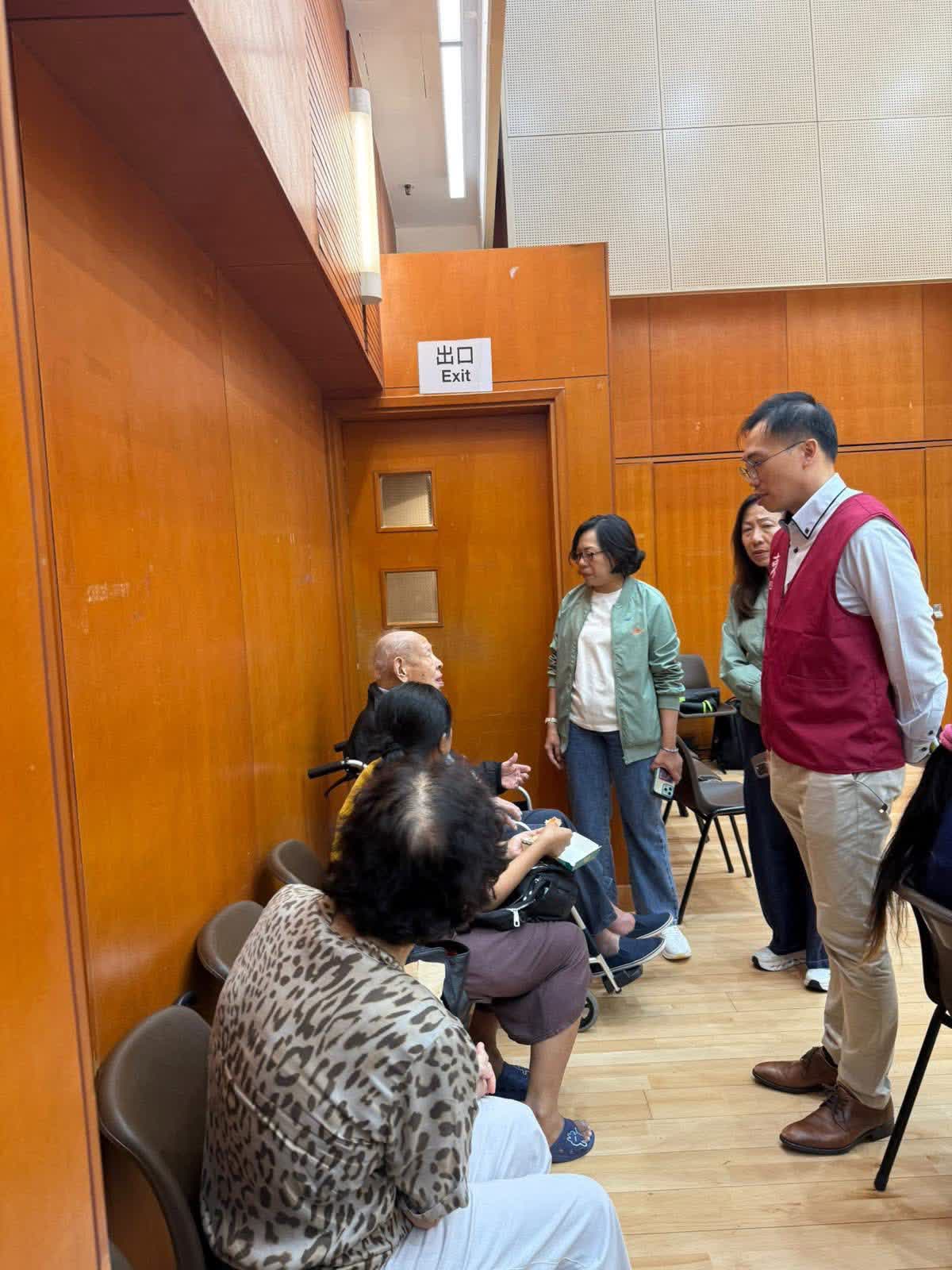 民政及青年事務局局長麥美娟和民政總署署長杜潔麗,與區議員、關愛隊晚上到社區會堂探望和協助受影響居民。民政事務總署在社交平台發文指,民政事務總署、東區民政處、區議員、 關愛隊現正全力支援警方的疏散工作,東區民政處已派出全區35隊關愛隊全力支援,包括在有關大廈協助有需要的居民,以及在庇護中心提供協助。同時,民青團隊亦已透過地區網絡,通知受影響的大廈法團和管理公司,讓他們可以及時通知住戶。灣仔關愛隊亦隨時候命,加強支援。民政總署今晚已開放15個臨時庇護中心予有需要的市民使用。為方便居民,民政處亦已安排旅遊巴接送有需要的居民到社區會堂。