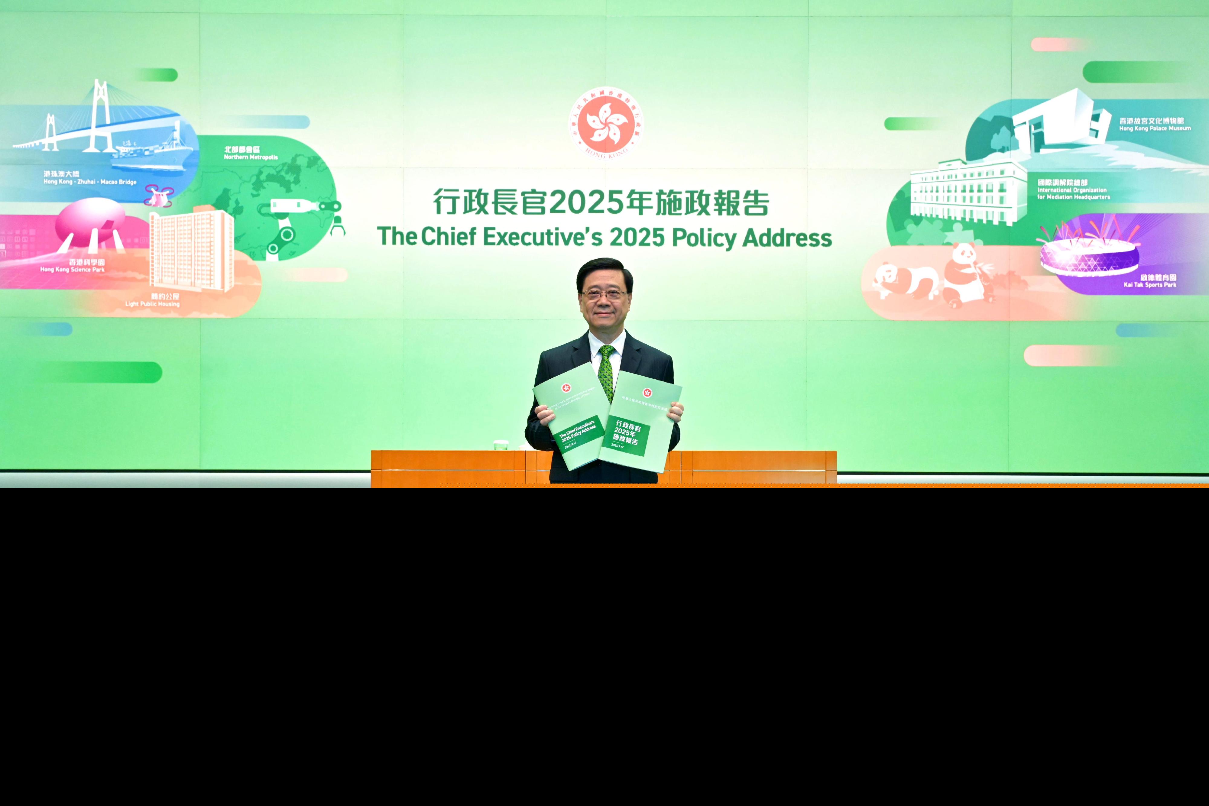 李家超還介紹,河套深港科技創新合作區(河套合作區)位處深圳河兩側,涵蓋深圳園區及香港園區,憑藉「一區兩園」優勢推動兩地創科合作發展。河套合作區香港園區(河套香港園區)第一期首三座大樓已落成,生命健康科技、微電子、新能源及人工智能等支柱產業租戶正陸續進駐;另外5座大樓於2027年起陸續完工。
