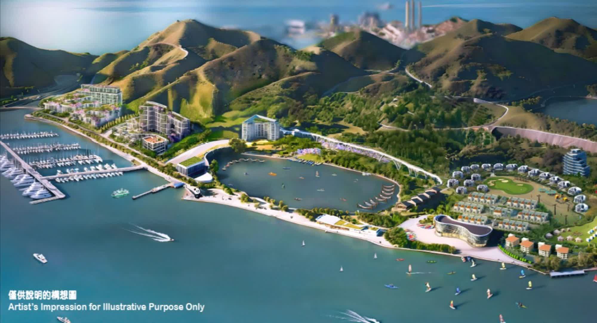 為配合香港未來遊艇經濟的發展,發展局正牽頭推動前南丫石礦場、香港仔避風塘擴建部分及紅磡站臨海用地三個項目,預計將可合共提供約600個新遊艇泊位。圖示前南丫石礦場構想圖。(甯漢豪網誌圖片)