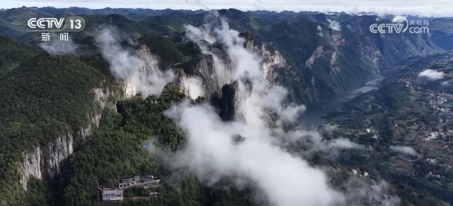 湖北恩施大峡谷进入最佳观赏期。从空中俯瞰,洁白云雾如丝带般缠绕山间,峡谷景致尽显壮阔与灵动。