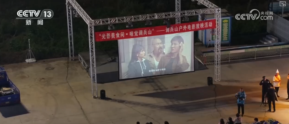 国庆中秋假期,在辽宁省铁岭调兵山市,当地举办露天电影与非遗美食相结合的系列活动,打造独特的文旅消费体验。市民游客在欣赏电影的同时享受美食,度过一个美好惬意的假期。