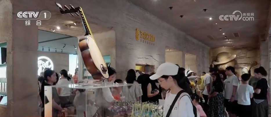 这个假期,位于上海静安公园的“洞见220·敦煌奇境嘉年华”快闪店热闹非凡。走进这里,石岩壁装潢着整个空间,让人仿佛置身敦煌莫高窟。