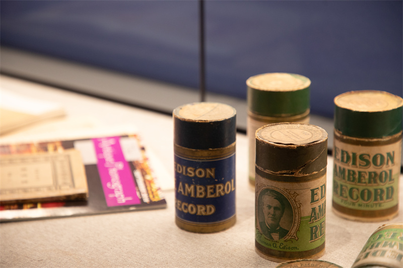 展厅中呈现有爱迪生早期“琥珀”蜡筒与“钻石”唱片、“听主人的声音”金扇面留声机、德国KLINGSOR弦共振留声机、新中国首版《黄河大合唱》密纹唱片与红唱片《垦春泥》、Webster Chicago钢丝录音机等重要展品,同时搭配“聆听北京的声音”“未来音乐星河”等交互体验区与留声机复原场景打卡区,以多元的视听内容和感官体验,为观众带来趣味性的声音科普,感受声音科技与艺术发展的魅力。