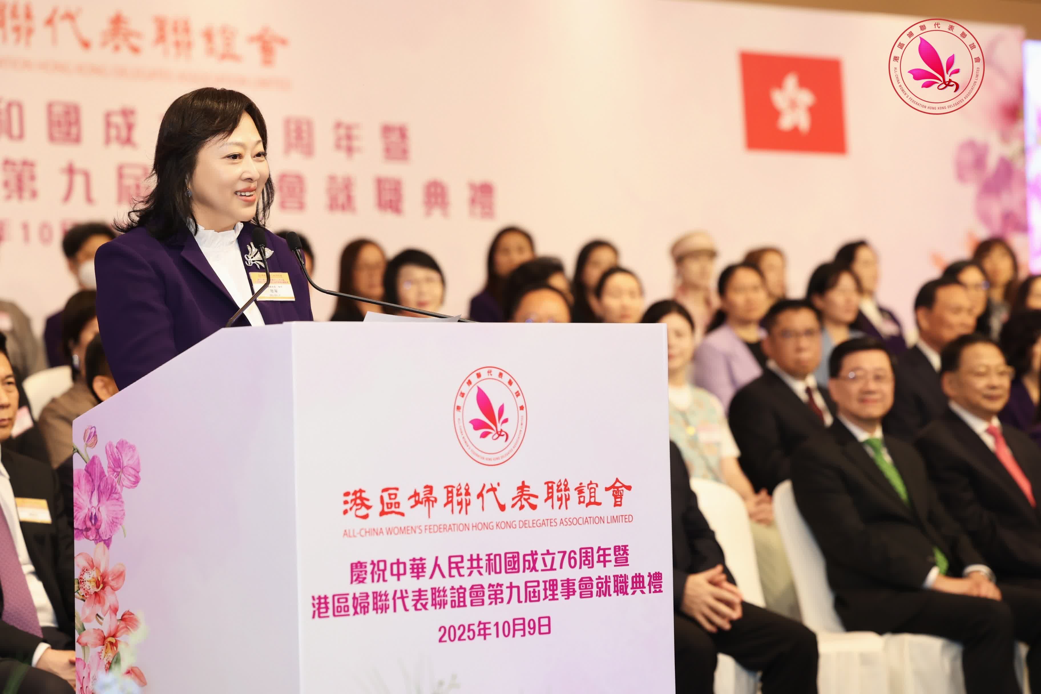 全國婦聯副主席、書記處第一書記黃曉薇與香港各界姐妹共慶祖國華誕,展望香港與祖國並肩邁向民族復興的美好前景。她表示,習近平總書記在紀念中國人民抗日戰爭暨世界反法西斯戰爭勝利80周年大會、在慶祝中華人民共和國成立76周年招待會上發表重要講話,令全國各族人民愛黨愛國熱情極大迸發,民族自信心自豪感空前高漲。她勉勵港區婦聯代表聯誼會姐妹全面準確貫徹「一國兩制」方針,落實「愛國者治港」原則,堅定支持行政長官和特區政府依法施政,繼續弘揚愛國愛港光榮傳統,為香港加快邁向由治及興匯聚「她動能」;立足香港所能、盡展婦女所長、服務國家所需,在促進香港高品質發展中綻放「她精彩」;更好發揮婦女在社會生活和家庭生活中的雙重獨特作用,為共建香港美好家園貢獻「她力量」。