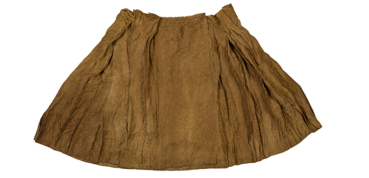 黄褐色绸地织灵芝竹叶纹马面裙 明 长83厘米 宽123厘米 上饶市博物馆藏 2016年江西省上饶市广信区白岭明墓出土