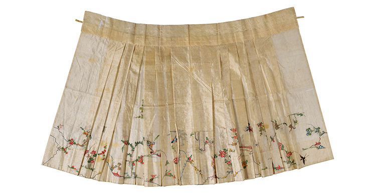 白色暗花纱绣花鸟纹马面裙明长88厘米腰宽60厘米山东博物馆藏(图片由清华大学美术学院提供)