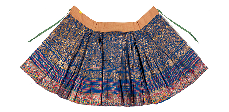 蓝色缠枝四季花卉纹织金妆花缎马面裙明长88厘米腰围104厘米山东博物馆藏(图片由清华大学美术学院提供)