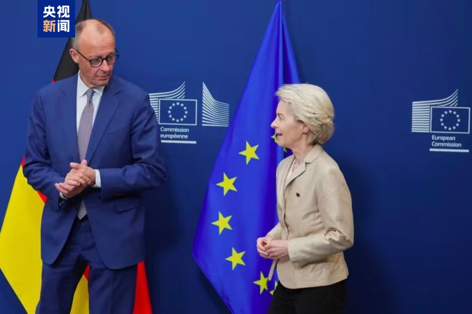 △德国总理默茨(左)与欧盟委员会主席冯德莱恩