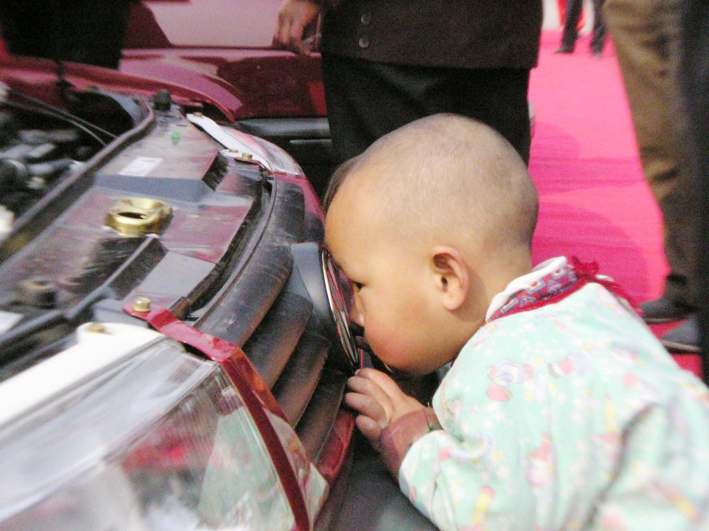 2004年3月27日,一汽-大众新捷达上市仪式在石家庄市文化广场举行,一位小朋友对参展的汽车产生了浓厚的兴趣。