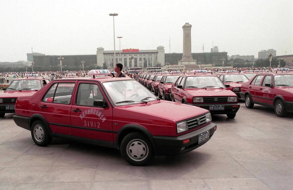 2000年7月9日,北京五大出租车公司订购3000辆一汽-大众捷达轿车签字仪式在北京举行。这是仪式后,首批300辆捷达驶向北京街头。
