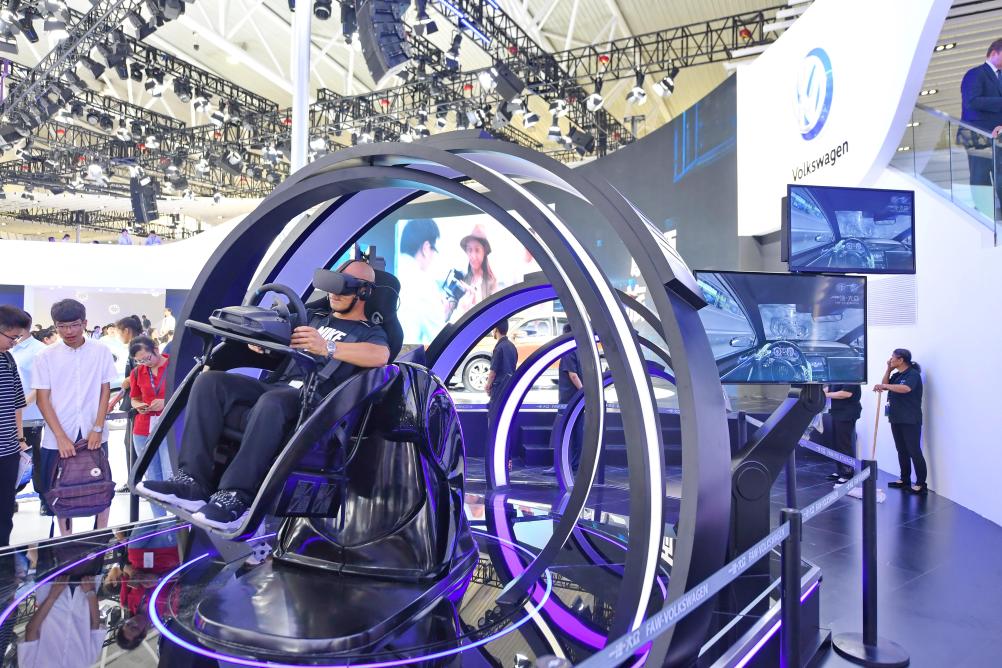 2017年7月15日,市民在第十四届中国(长春)国际汽车博览会一汽-大众展台体验VR试驾。