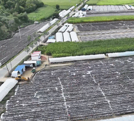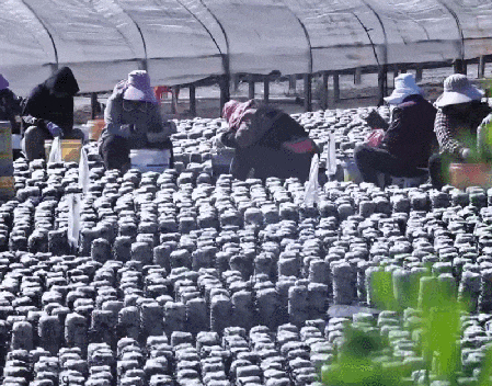 (木耳种植基地里的忙碌景象。黄松甸镇供图)