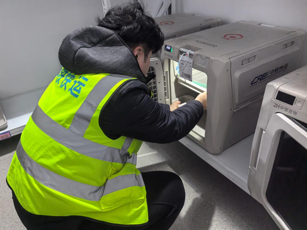 中铁快运太原南站营业部业务负责人武鑫介绍:“我们自今年10月启动高铁宠物托运服务试点以来,已经托运过宠物猫、宠物狗等。旅客可以在12306官方平台或到营业部现场办理托运业务。托运前,需要提交相关部门的检疫证明。工作人员会对宠物运输箱和列车环境进行严格消毒。宠物运输箱内还带有摄像头,主人可以通过监控查看自家宠物的实时状态。我们配备的工作人员,也会定时检查宠物状态,提供必要的安抚和饮水。”