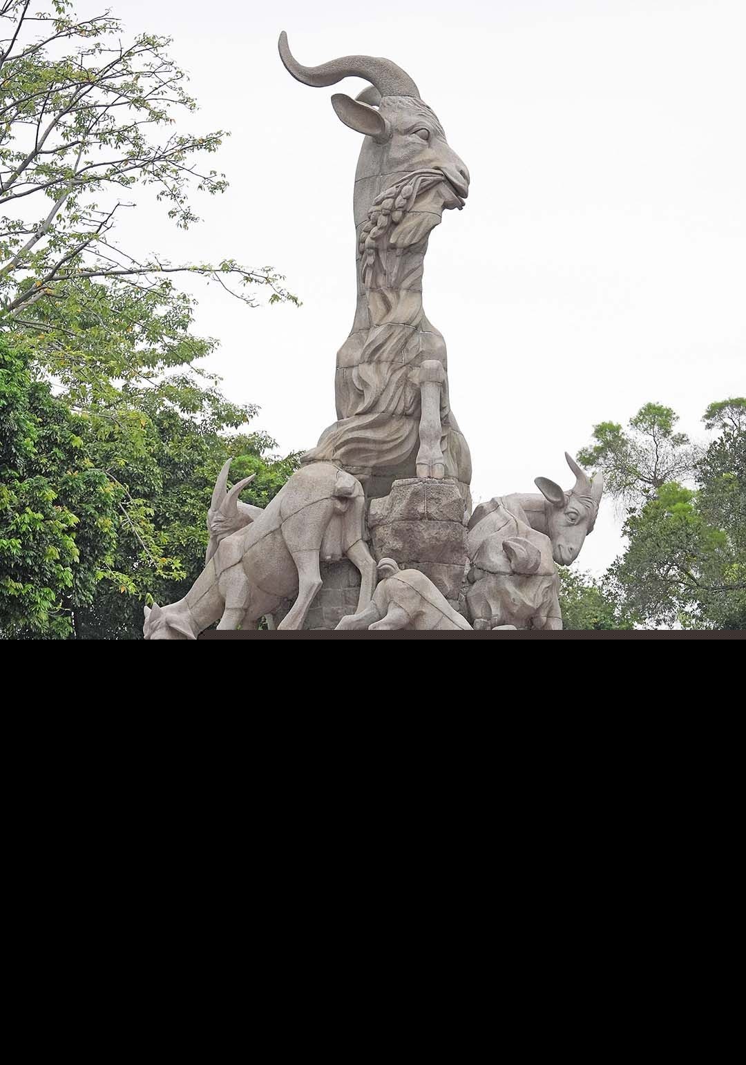 火炬手在廣州越秀公園內的五羊雕像前傳遞火炬。(新華社圖片)