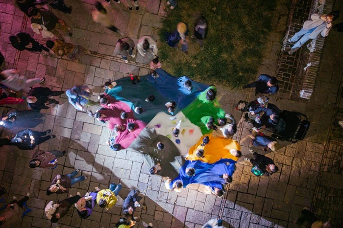 本届活动,飞毯舞团迪斯科巴士游村在大队部广场启动。这个名字源自第一年“四季美术课”中孩子们用剩余布料缝制的“蝴蝶飞毯”,如今已成为“南坡秋兴”的传统节目。
