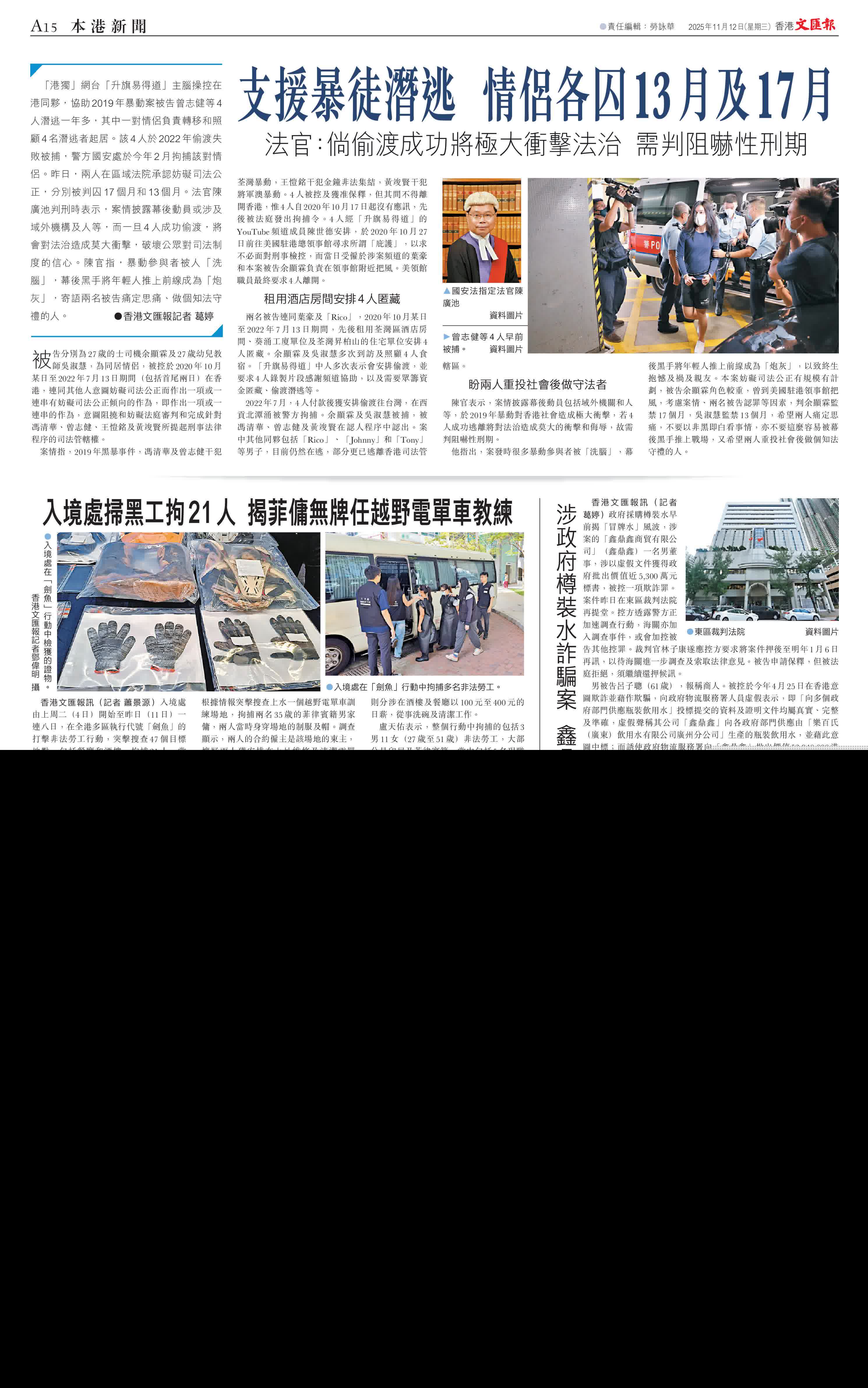 (香港文匯報記者 蕭景源)長沙灣元州邨揭發雙屍案。屋邨保安員昨日清晨約6時巡經元樂樓18樓一單位外走廊,發現該單位內傳出惡臭,拍門無人應,報警由警員和消防員破門入屋,赫然發現一對分別67歲及59歲的兄弟倒斃床上,其中兄長身體更已嚴重腐爛,死去多時。警方事後在現場檢獲兩名死者留下的3封遺書,初步不排除兄長早前絕食死亡後,胞弟傷心服藥共赴黃泉。案件無可疑,列作「自殺」及「屍體發現」案跟進。