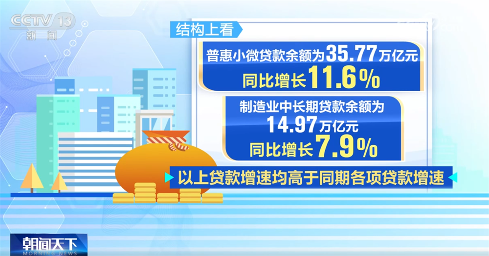 结构上看,普惠小微贷款余额为35.77万亿元,同比增长11.6%,制造业中长期贷款余额为14.97万亿元,同比增长7.9%,以上贷款增速均高于同期各项贷款增速。