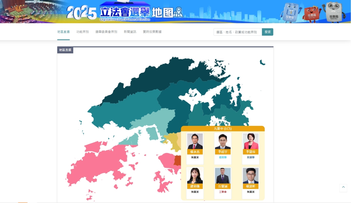 此外,香港大公文匯傳媒集團日前還推出「2025立法會選舉地圖」,清晰、直觀展現今次立法會換屆選舉。「2025立法會選舉地圖」有四大特點:首先,頁面簡潔、呈現清晰。首頁分為「地區直選」、「功能界別」、「選舉委員會界別」、「新聞資訊」四個欄目,可清晰查看地方選區、功能界別及選舉委員會界別參選人信息。12月7日選舉投票結束後,會第一時間呈現當選議員的信息。其次,資訊全面、快捷準確。「新聞資訊」欄目即時更新選舉資訊,第一時間觸達讀者,信息全面、準確。選舉動態、參選人政綱、選情分析、深度解讀等,盡在「新聞資訊」欄目。第三,實時跟蹤、即時可見。專題實時跟蹤地區直選、功能界別、選舉委員會界別選情,每個選區、每個功能界別的投票率與投票人數即時可見。在立法會議席分布方面,市民可清晰了解最新選情,查看議席的分布情況。最後,實用貼心、盡在掌握。通過右上角「搜索」功能,市民可快速觸達關注的參選人及選舉資訊。點開參選人頭像,還可查看該名參選人的更多信息,底部同時列出該參選人相關的新聞資訊,便於讀者深入了解。