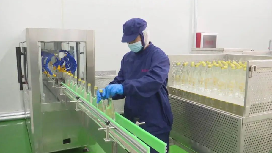 工人正在车间加工桦树汁饮料