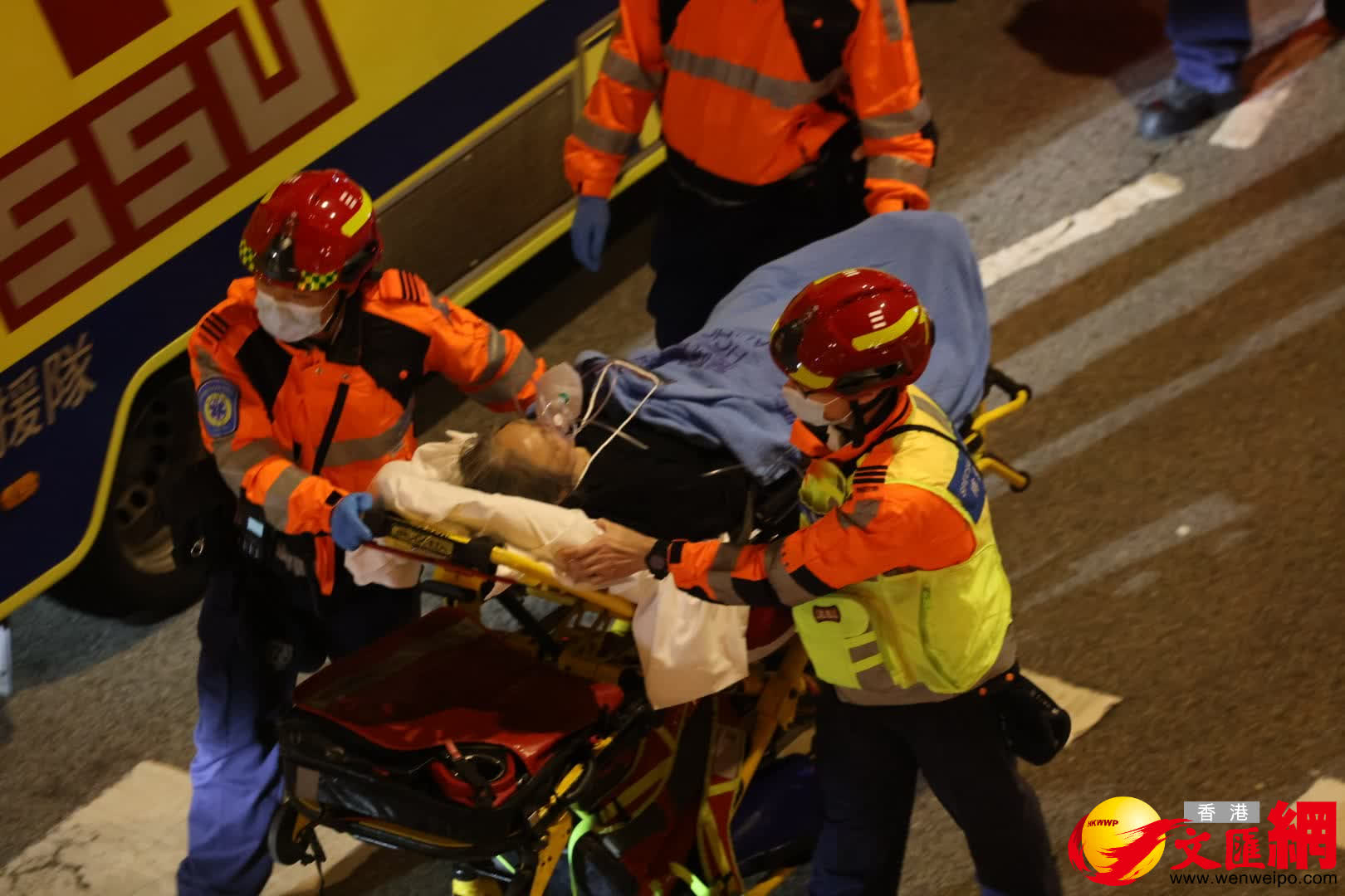 消防處凌晨陸續救出被困居民,消防處副處長陳慶勇說,成功在火場救出56名傷者,傷者散落大廈不同位置,主要在宏昌閣及宏泰閣被發現。他說,消防處在其中一幢大廈的天台位置救出兩名生還者。