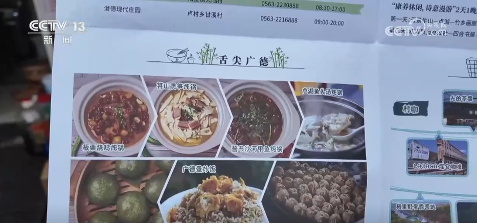 为了让这次爆火之后带来的“流量”变成“留量”,广德市还制作了旅游手绘地图,在每一个景点,甚至是每一张饭桌上都能发现。旅游地图上不仅标注了当地的景点、地道好物还有精美民宿,让一日游变成深度沉浸游。