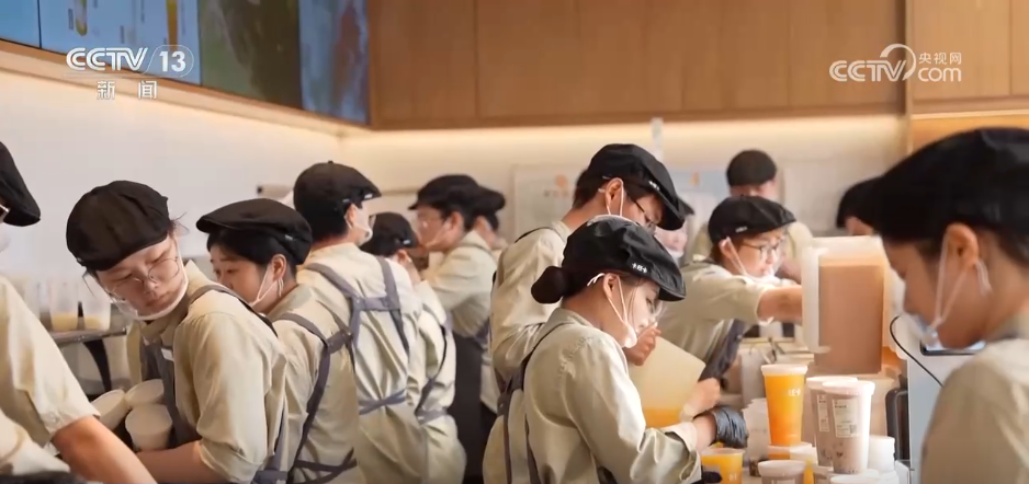 距离不远处,三件套中的奶茶店和桃酥店同样火爆。每天上午这两家店铺开始营业之前,店门口就排起长龙,队伍顺着街边一路延展,一眼望不到头。路边停靠的车辆中,外地牌照的车占了绝大多数。为了应对客流,这家奶茶店紧急从安徽各地调派员工赶来帮忙。