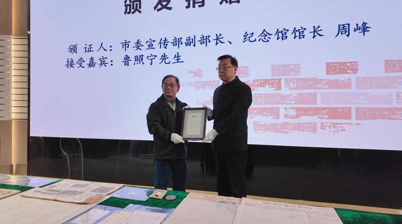 美籍华人鲁照宁已投身文物搜集工作21年,这是他今年第3次来馆,捐赠了一批英、法文刊物,以第三方视角为日军暴行提供了有力佐证。