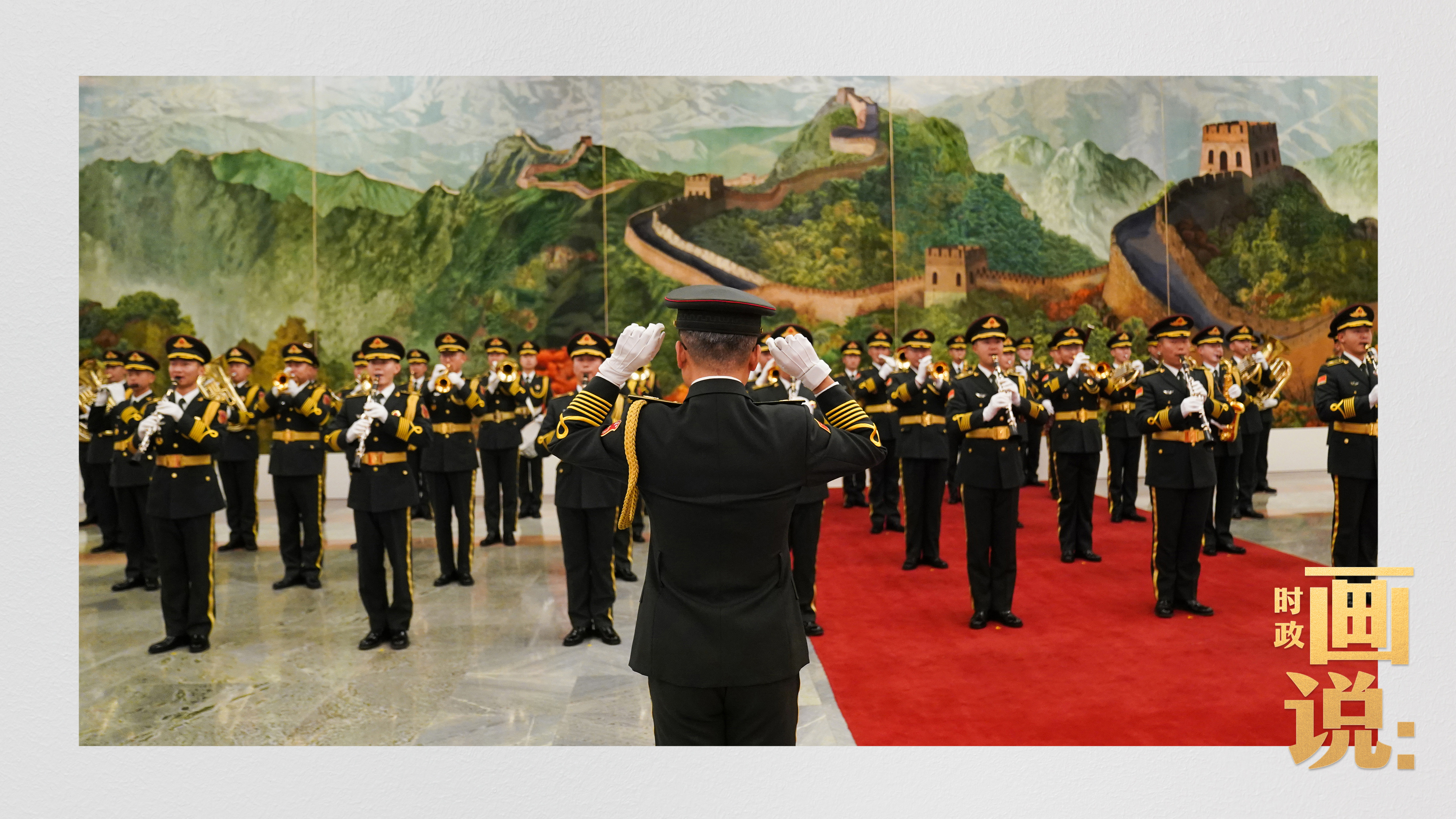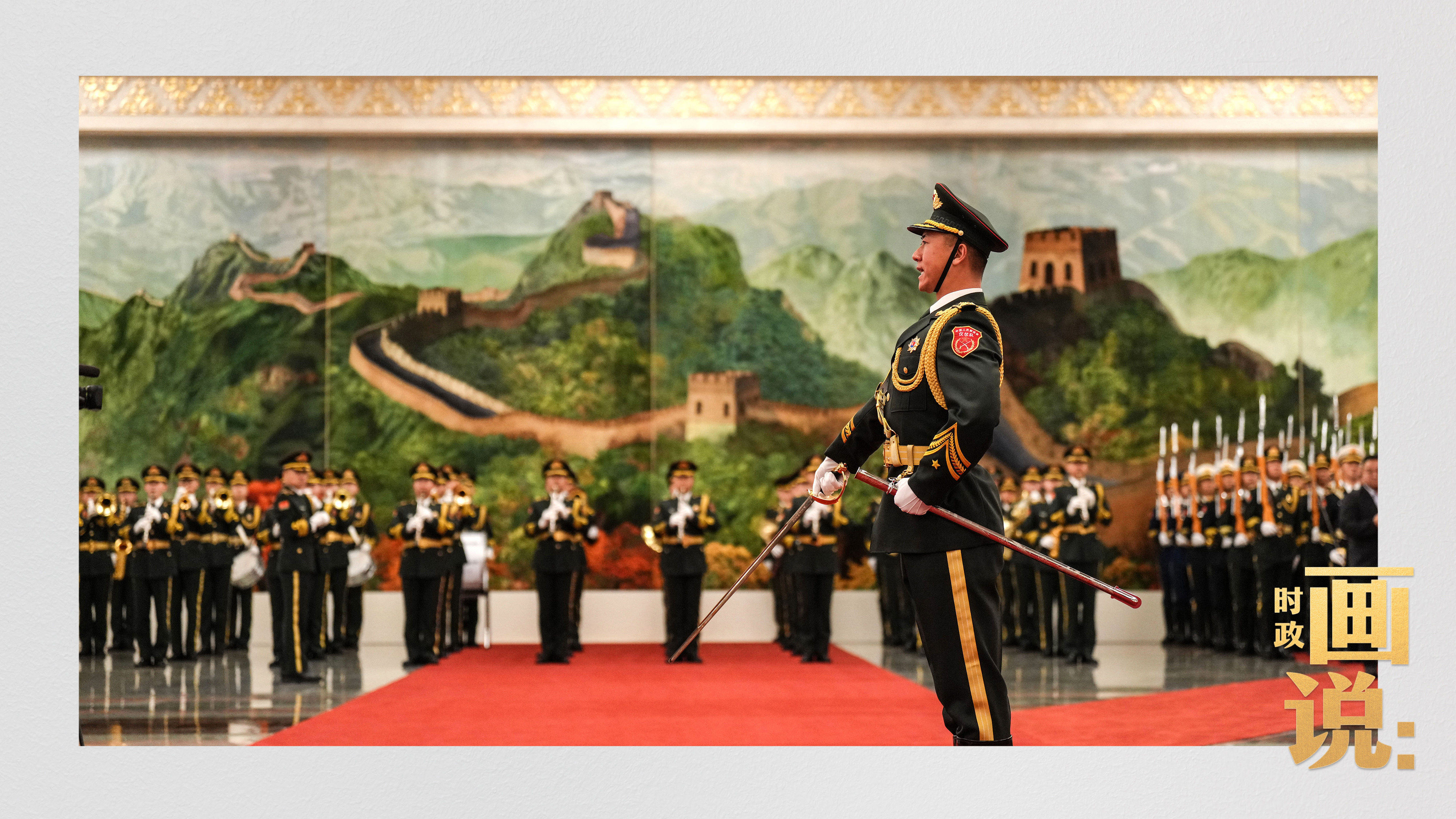 △马克龙在习近平陪同下检阅中国人民解放军仪仗队并观看分列式