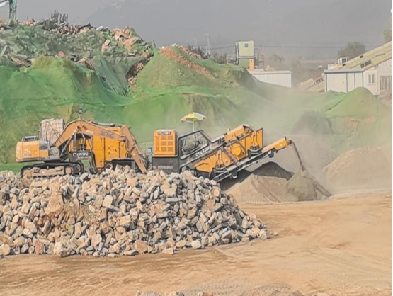 图3 2025年10月28日,督察组暗查发现,北京市平谷区南独乐河镇建筑垃圾资源化处置场正对建筑垃圾进行露天破碎筛分,现场粉尘弥漫、污染严重