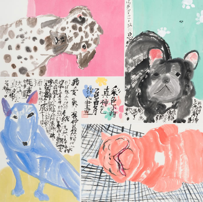 《彩色小狗真神气》刘陆锦蓉(幼儿组)中国画,56x56cm