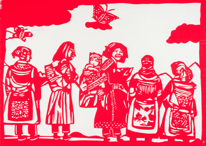 《育儿袋的故事》苏慧歆(小学二组),剪纸,38x53cm